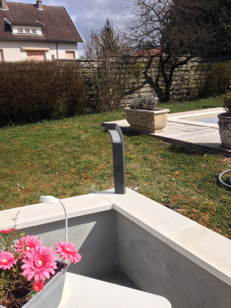 La société Tomec a profité des travaux d’aménagement extérieur pour réaliser l’éclairage de la terrasse. Dans le but de limiter les coûts de travaux supplémentaires, la commande se fait de manière sans fil par télécommande murale à poser où vous souhaitez.